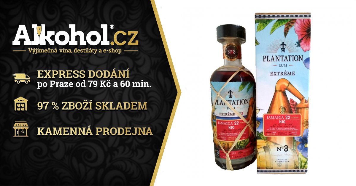 PŘÍLEŽITOST K ZÍSKÁNÍ JEDINEČNÉHO EXTREMNÍHO RUMU PLANTATION EXTREME NO. 3 HJC JAMAICA 22Y 0,7L 56,2% L.E. 2001/2121