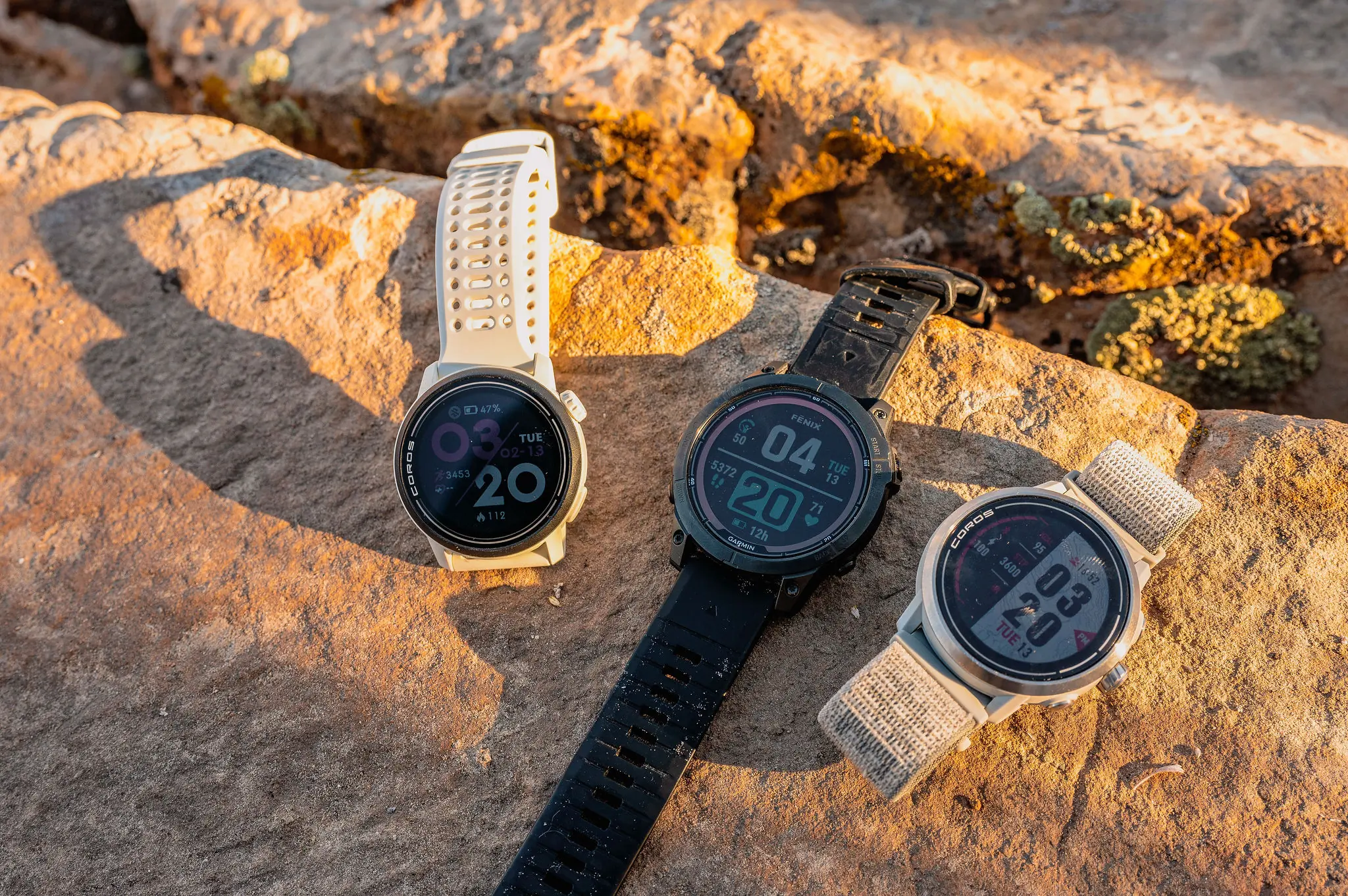 The COROS Pace 3 (left) is a steal at $229, and offers many of the same features as the COROS Apex 2 Pro; (photo/Matthew Tangeman)