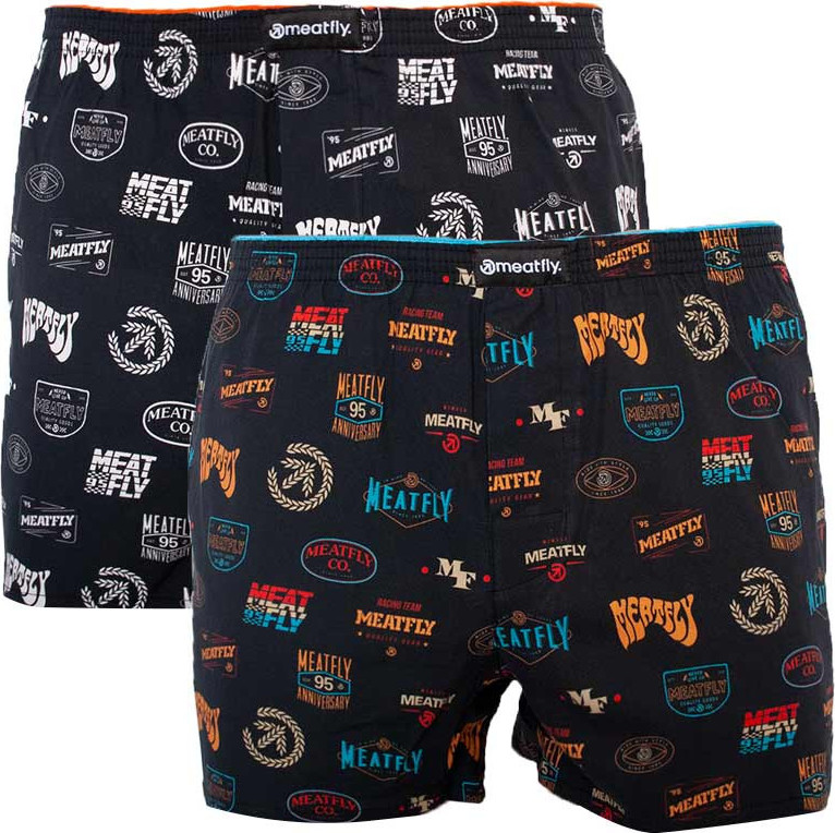 ✅2PACK pánské trenky Meatfly vícebarevné (Agostino – Badges) XXL Možnost vrácení zboží do 120 dnů!