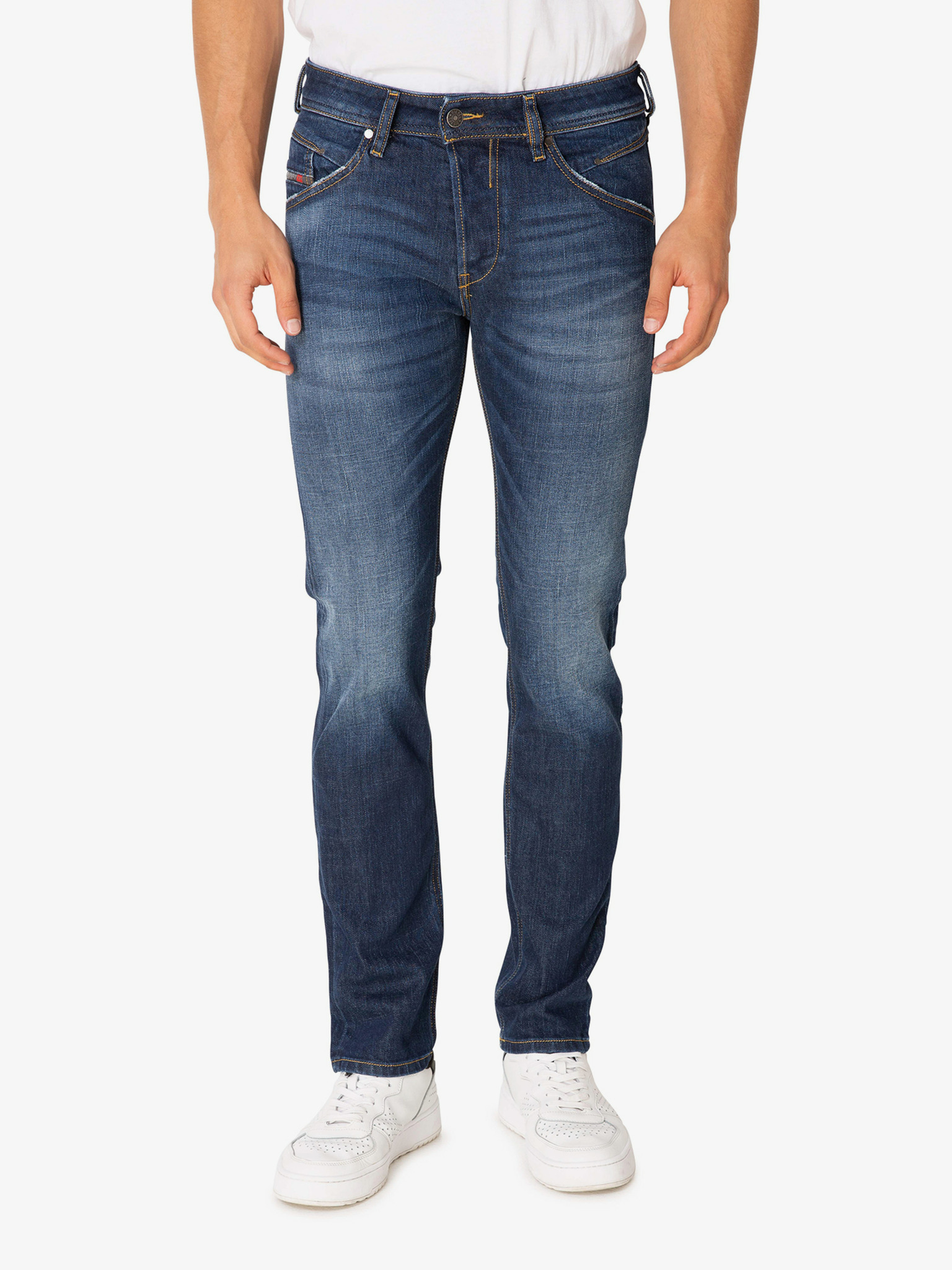 Model: Belther-R Barva: tmavě modrá Střih: slim fit Zapínání: knoflík, zip Délka: regular Něco navíc: vyšisovaný efekt Materiál: 99% bavlna, 1% elastan