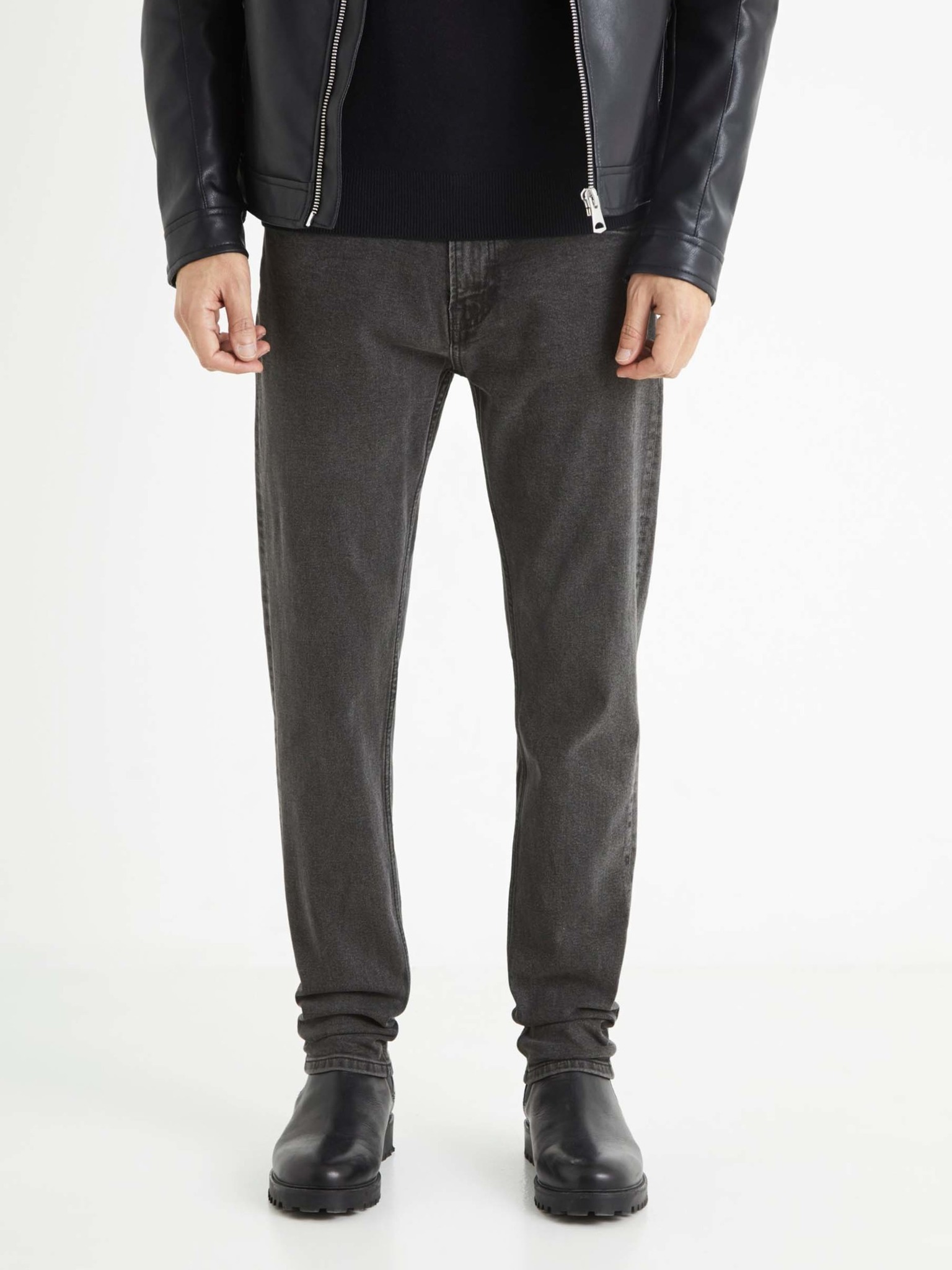 Model: C25 Bofirst Barva: tmavě šedá Střih: slim fit Zapínání: zip, knoflík Délka: regular Něco navíc: vyšisovaný efekt Materiál: 99% bavlna, 1% elastan