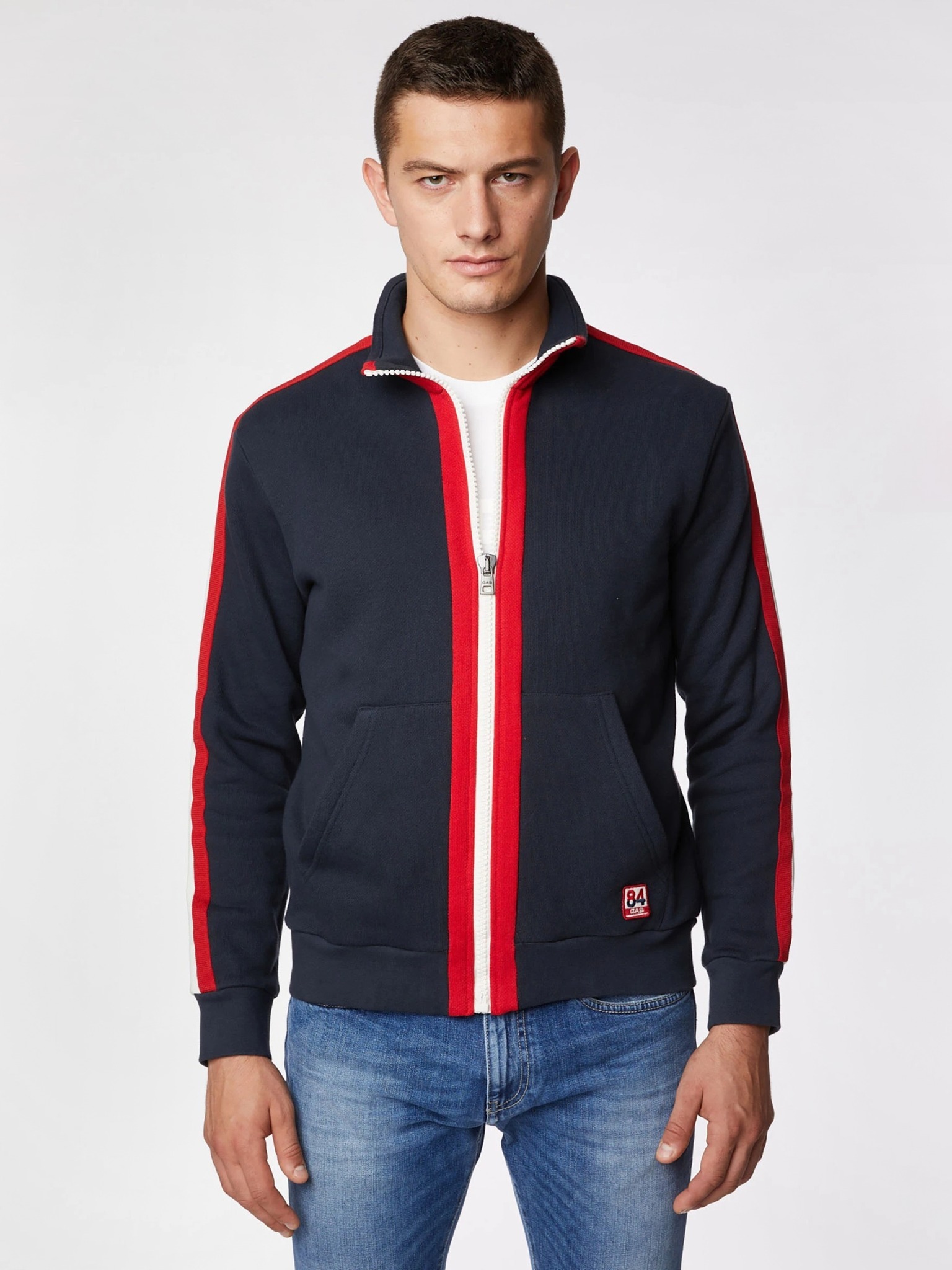 Model: Gard Barva: tmavě modrá Vzor: pruhovaný Střih: regular fit Rukáv: dlouhý Zapínání: na zip Něco navíc: nášivka Materiál: 100% bavlna