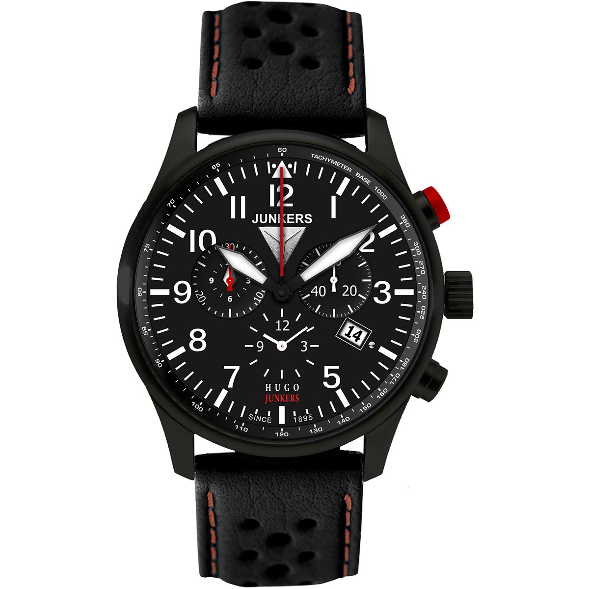Hodinky Junkers 6680-4 z modelové řady Hugo Junkers se vyznačují oblibeným leteckým designem se stopkami. Budou skvělou velbou nejen pro piloty, ale i milovníky společenských hodinek. Osazeny jsou bateriovým švýcarským strojkem Ronda 5130.D. Strojek je vybaven o ukazatel data, budík a stopky. Pomocí stopek můžete přehledně stopovat až po dobu 12 hodin. Ukazatel data nalezneme na pozici 4. hodiny. Voděodolnost je 100m, minerální sklíčko je vsazeno do ocelového pouzdra, jenž je černěno za pomocí PVD úpravy. Hodinky Junkers 6680-4 jsou dodávány s elegantním koženým řemínkem. Skvělá volba pro milovníky leteckých hodinek. Celá modelová řada Hugo Junkers byla vyrobena jako připomenutí 150-ti let od narození profesora Huga Junkerse, jenž je považován za největšího průkopníka německého letectví.