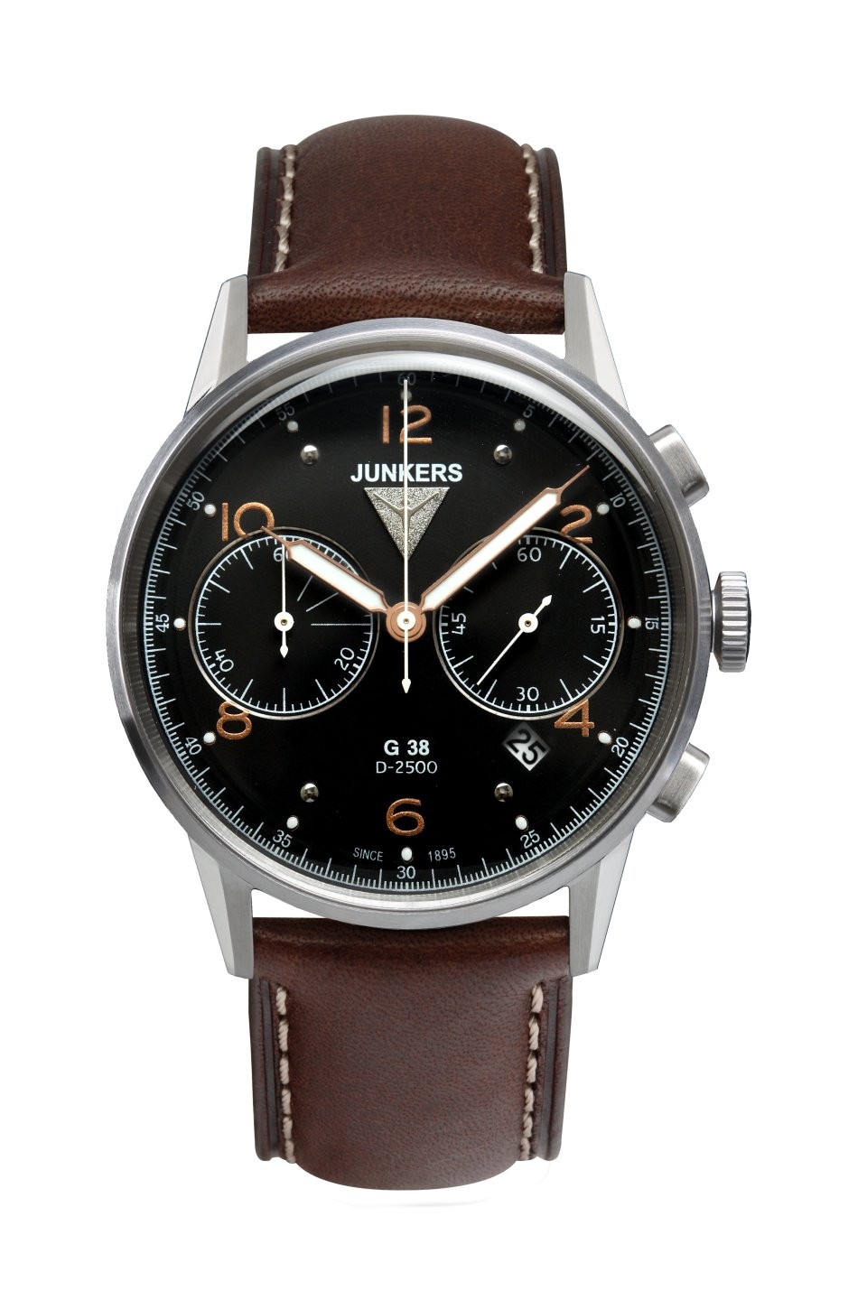 Hodinky Junkers 6984-5 z modelové řady G38 ED. 1 nabízí typický letecký design s na první pohled jasně čitelným ciferníkem. O přehlednost se starají výrazné číslice a ručky. Osazeny jsou bateriovým strojkem Miyota 6S21. Strojek je vybaven o ukazatel data a stopky. Pomocí stopek můžete přehledně stopovat až po dobu 60 minut. Voděodolnost je 100m, minerální sklíčko je vsazeno do ocelového pouzdra. Hodinky Junkers 6984-5 jsou dodávány s elegantním koženým řemínkem. Skvělá volba pro milovníky leteckých hodinek. Celá modelová řada G38 ED. 1 odkazuje na největší dopravní letoun své doby – Junkers G 38. Mistrovské dílo od Huga Junkerse. Letoun v začátcích sloužil především na lince od Londýna. V průběhu 2. světové války byl Lufthanse letoun zabaven Luftwaffe, aby sloužil k přepravě vojenského materiálu. Účastnil se mimo jiné i okupace Norska v dubnu 1940.