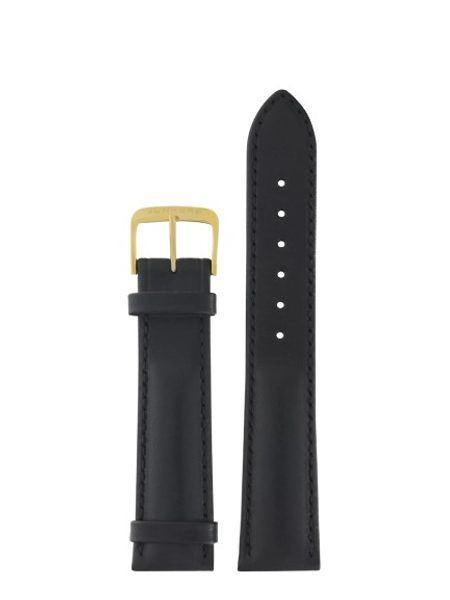 Originální Junkers řemínek černé barvy v šířce 20 mm, je vyroben z telecí kůže. Doplňuje jej zlatá trnová přezka a barevně ladící šev.