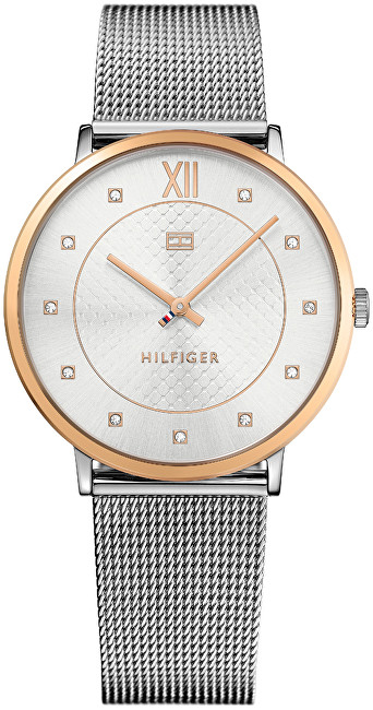 Hodinky z dílny oblíbené značky Tommy Hilfiger jsou jako stvořené pro všechny moderní sebevědomé ženy se zálibou ve sportovní eleganci. Na první pohled vás upoutá zlacené pouzdro a stříbrný milánský tah z ušlechtilé oceli. Ciferník se pyšní světlým stříbrným odstínem a sází na tradiční vzhled – zdobí ho pouze jemné zlacené indexy osazené kamínky, ručičky a logo značky. Dopřejte si doplněk, který vaše okolí nenechá bez povšimnutí.