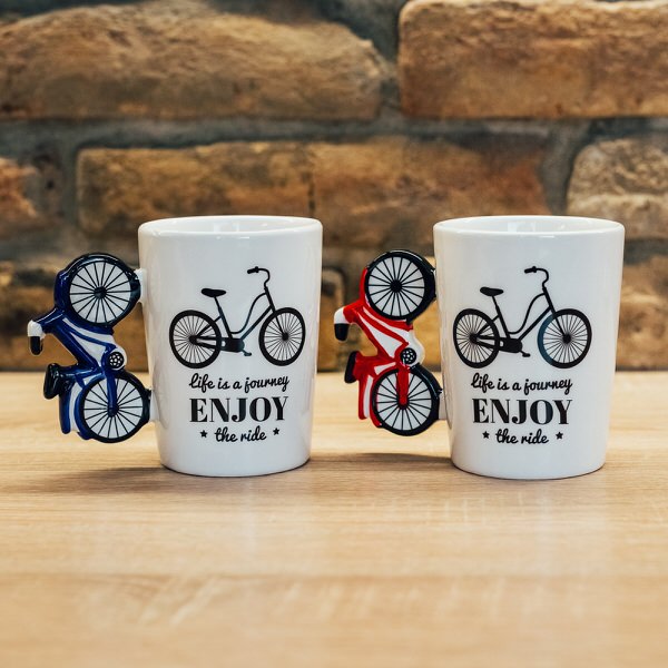 Kdo by neměl rád kola. Nestojí v koloně, jsou ekologické a ještě na nich i spalujete kalorie při každém přesunu. Pokud i vy holdujete jízdě na sedačce svého dvoukolového prostředku, hrnek kolo se vám určitě hned zalíbí. Namísto klasického ouška má maličký kolo a na samotném hrnku je obrázek s motivačním citací. Vychutnejte si svůj horký nápoj a pozitivně se nalaďte s tímto milým domácím doplňkem. Hrnek kolo je skvělý dárek nejen pro všechny sympatizantů cyklistiky.Vyroben z keramikyHrnek s ouškem ve tvaru kolaS nápisem: life is journey, ENJOY the rideRozměry: 12 x 9 cmKurýr PPL – 89 KčZásilkovna – výdejní místo – 70 KčCena dobírky je 30 KčDoprava zdarma při nákupu nad 1200 Kč