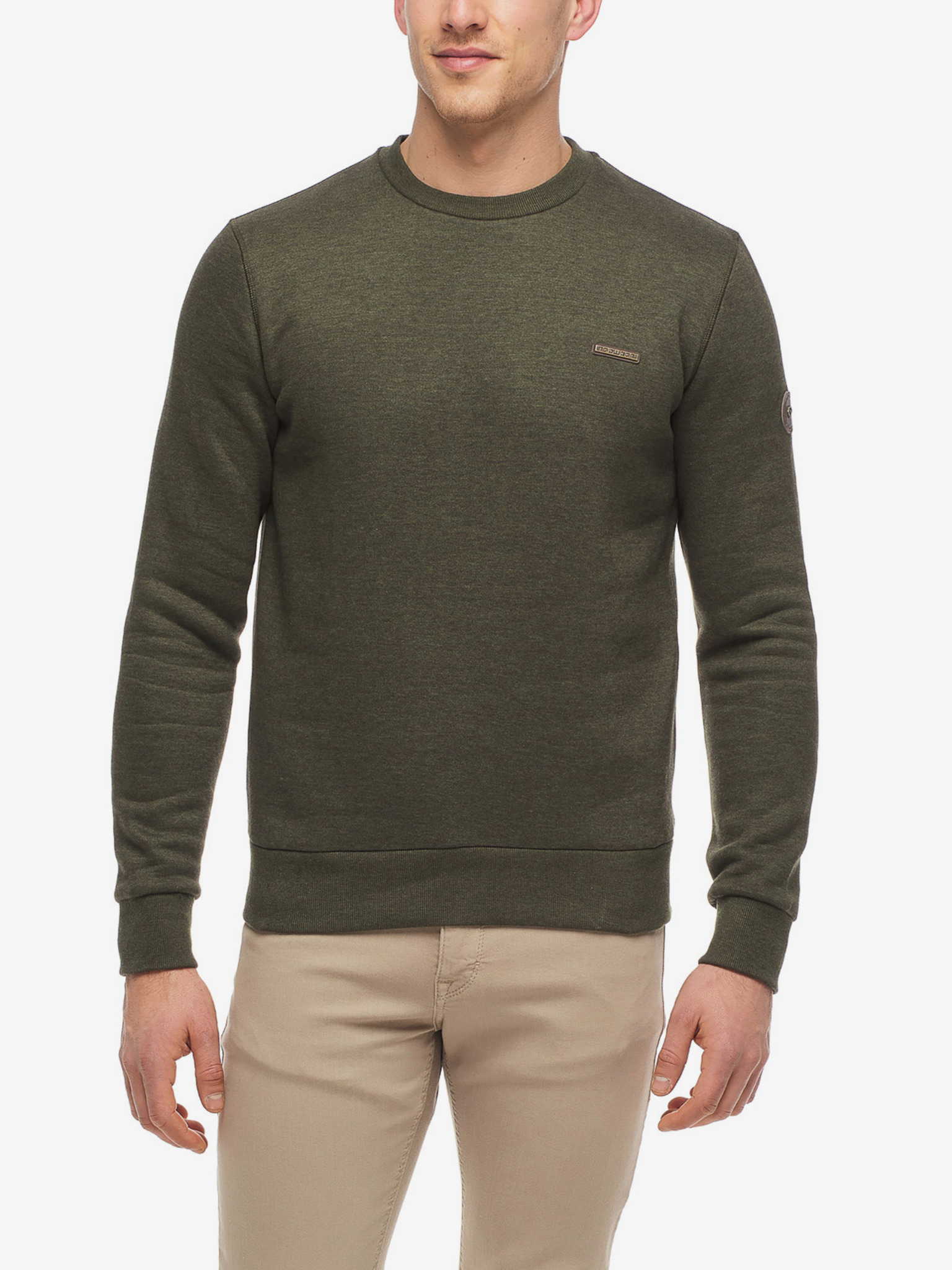 Model: Indie Barva: khaki Střih: regular fit Rukáv: dlouhý Zapínání: bez zapínání Něco navíc: nášivka Materiál: 70% bavlna, 30% polyester Udržitelnost: vegan certifikát PETA – záruka toho, že produkt neobsahuje žádné živočišné složky a ani nebyl v žádné fázi své výroby na zvířatech testován