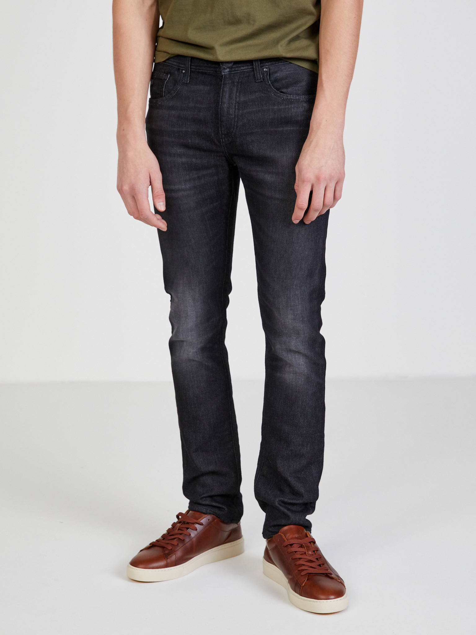 Barva: černá Střih: slim fit Délka: regular Zapínání: knoflík, zip Něco navíc: vyšisovaný efekt Materiál: 82% bavlna, 16% polyester, 2% elastan
