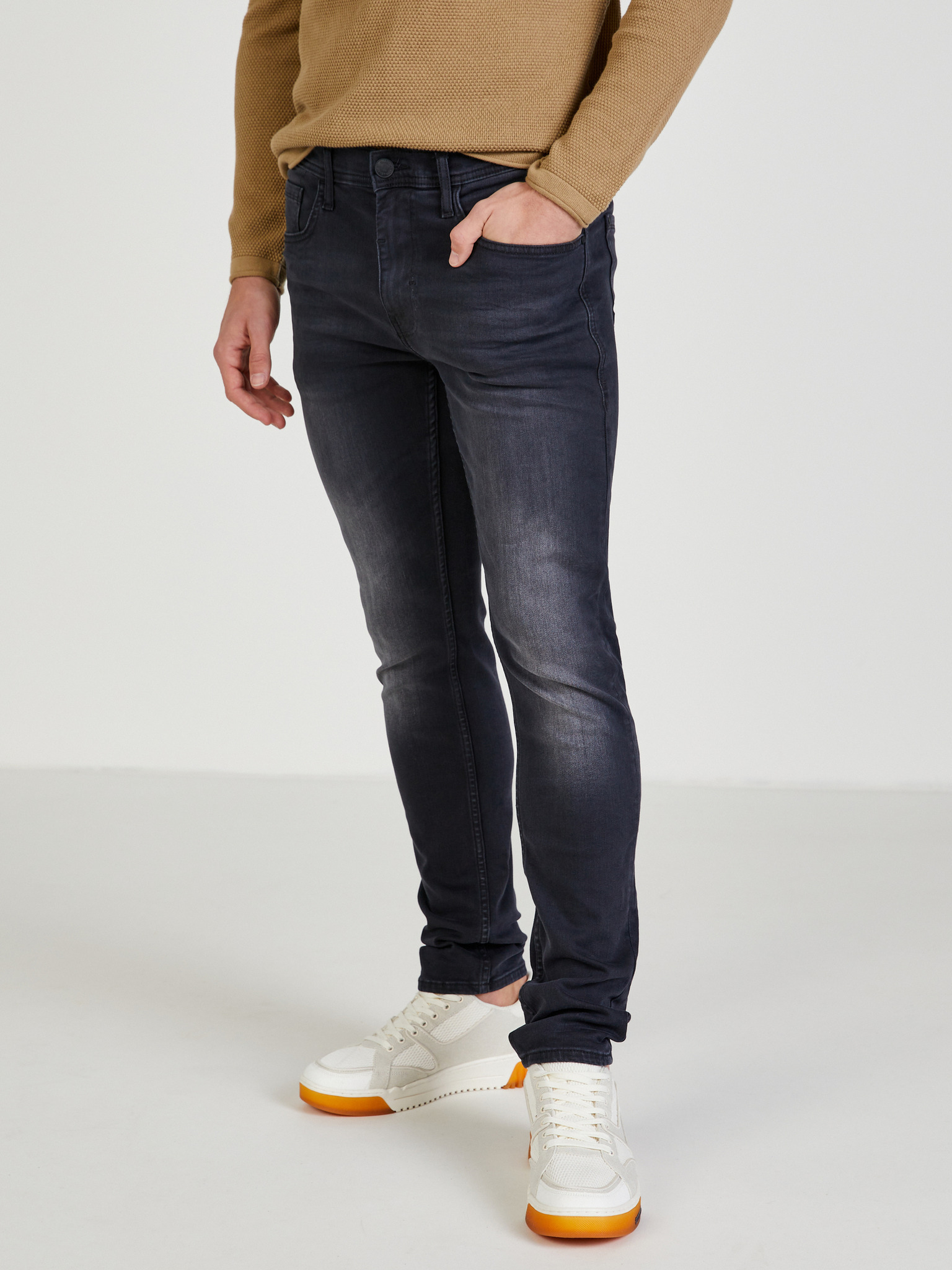 Barva: černá Střih: slim fit Délka: regular Zapínání: knoflík, zip Něco navíc: vyšisovaný efekt Materiál: 91% bavlna, 7% polyester, 2% elastan