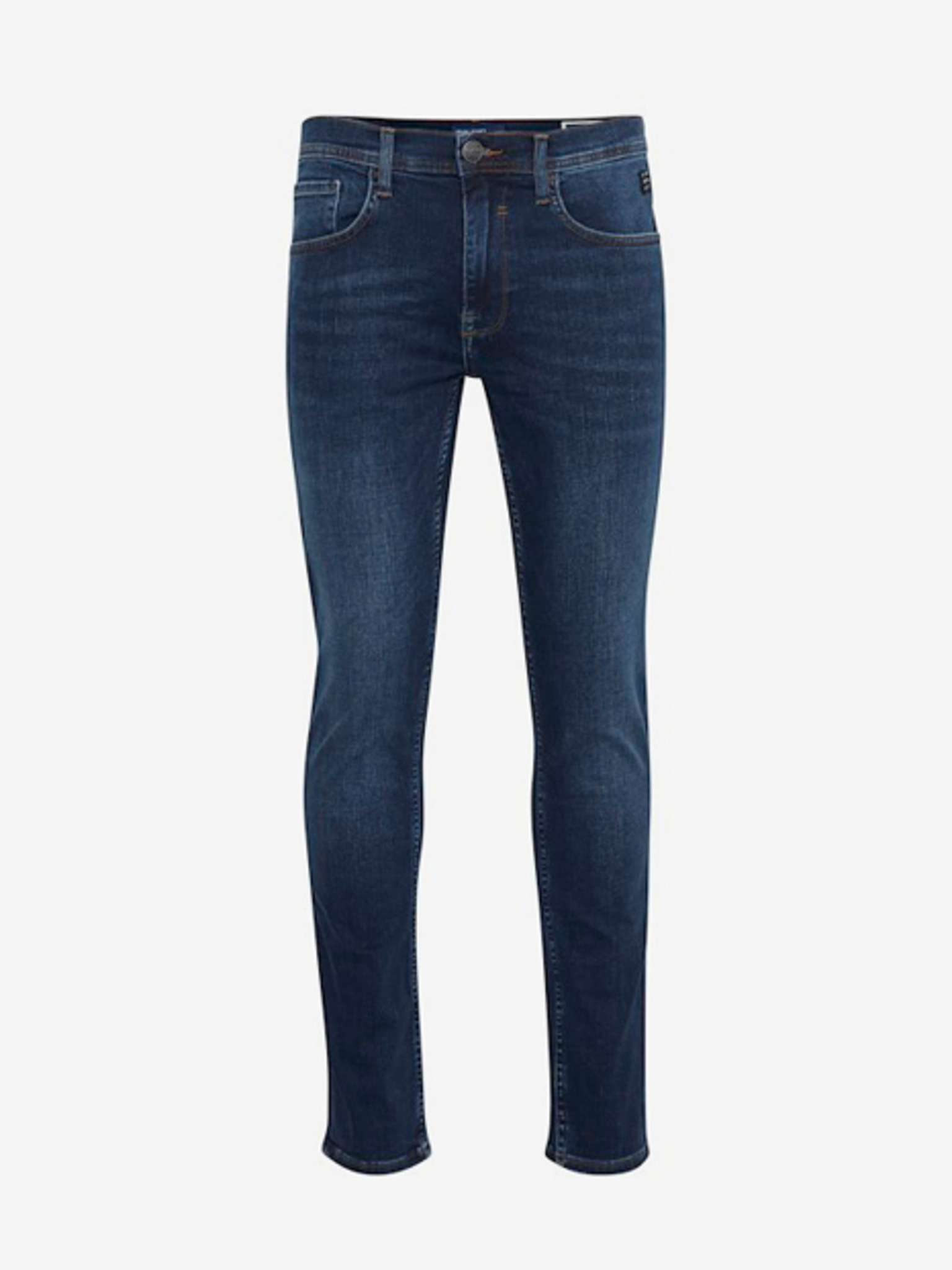 Barva: tmavě modrá Střih: slim fit Délka: regular Zapínání: knoflík, zip Něco navíc: vyšisovaný efekt Materiál: 93% bavlna, 6% polyester, 1% elastan