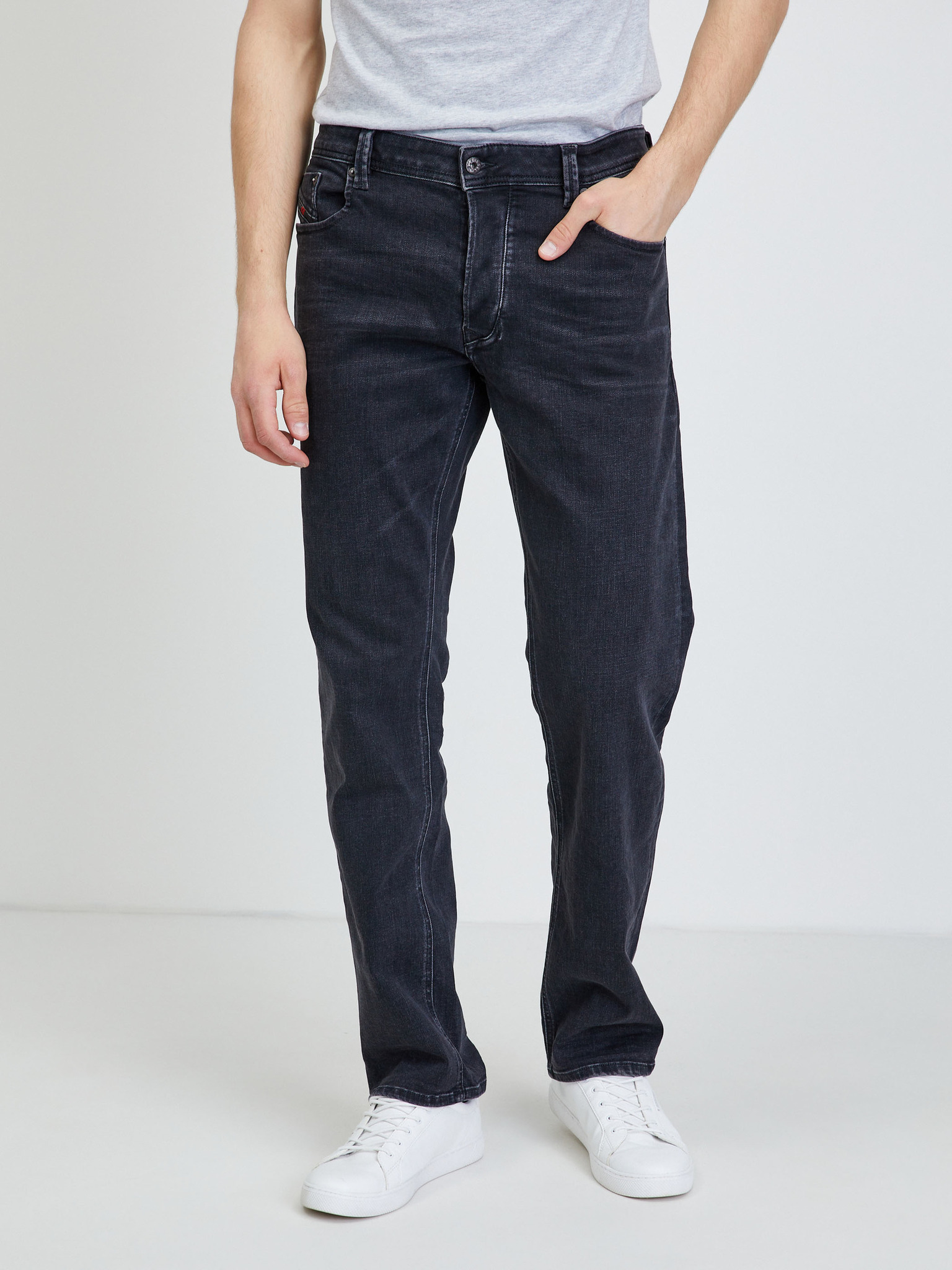 Barva: černá Střih: straight fit Délka: regular Zapínání: knoflík, zip Materiál: 94% bavlna, 4% polyester, 2% elastan Model měří: 190 cm Model má na sobě velikost: L