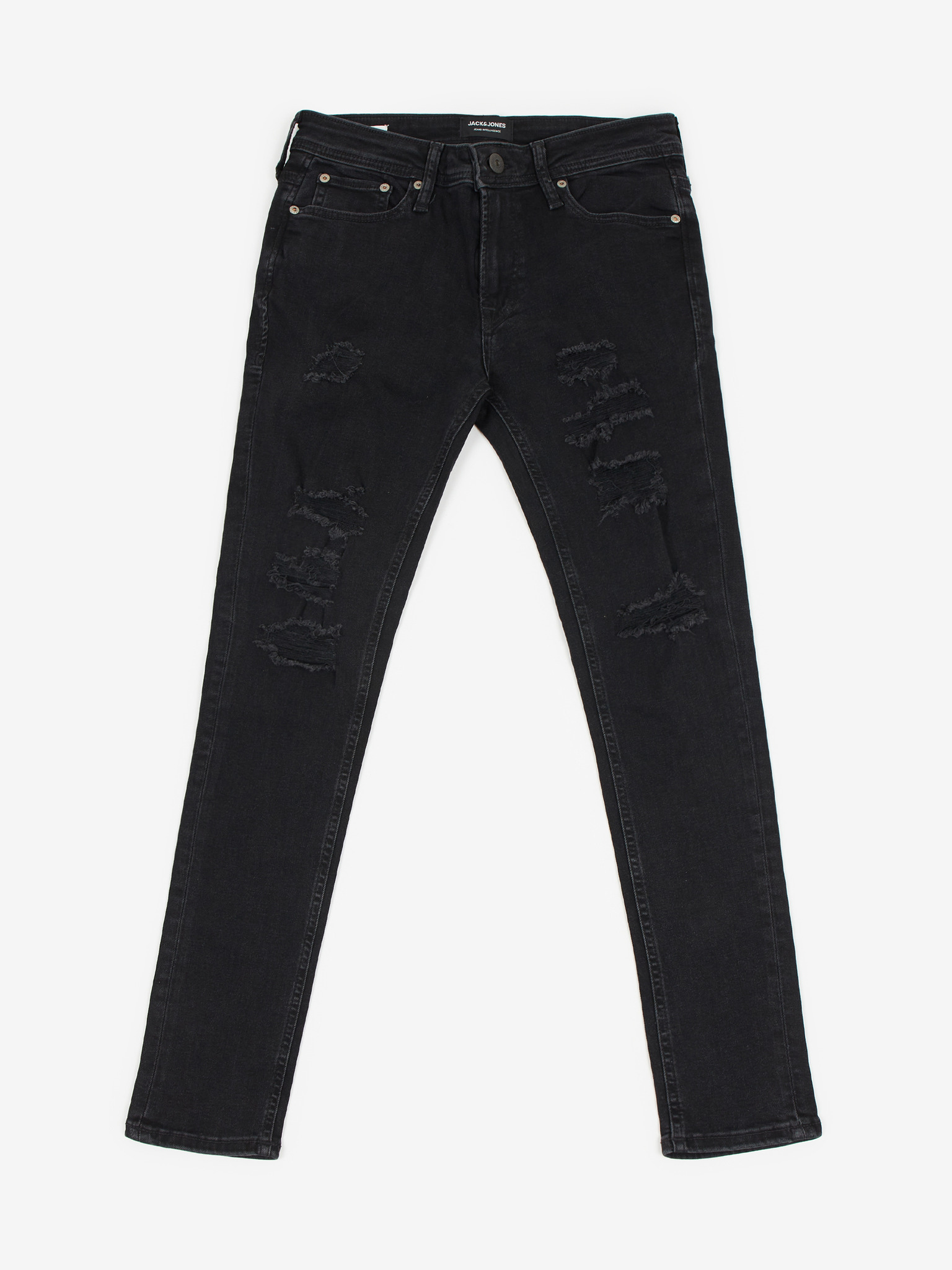 Barva: černá Střih: skinny fit Délka: regular Zapínání: na zip Něco navíc: potrhaný efekt Udržitelnost: organická bavlna Materiál: 88% bavlna, 10% organická bavlna, 2% elastan