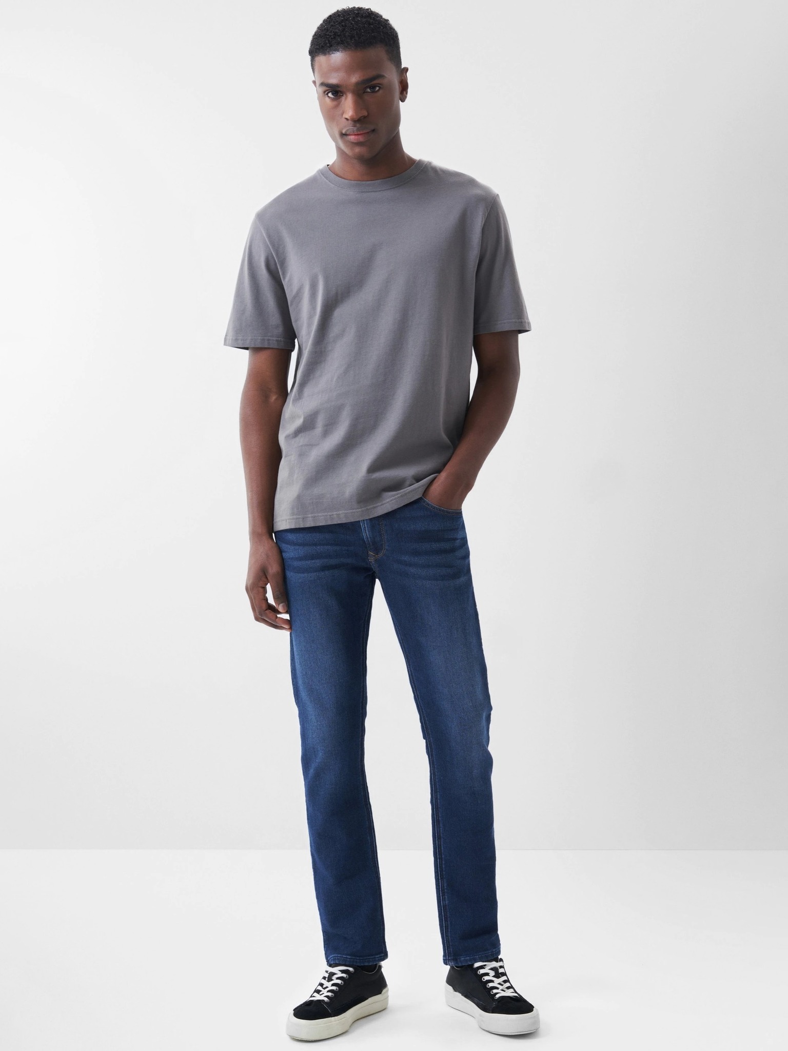 Barva: tmavě modrá Střih: slim fit Délka: regular Zapínání: zip, knoflík Materiál: 91% bavlna, 8% polyester, 1% elastan