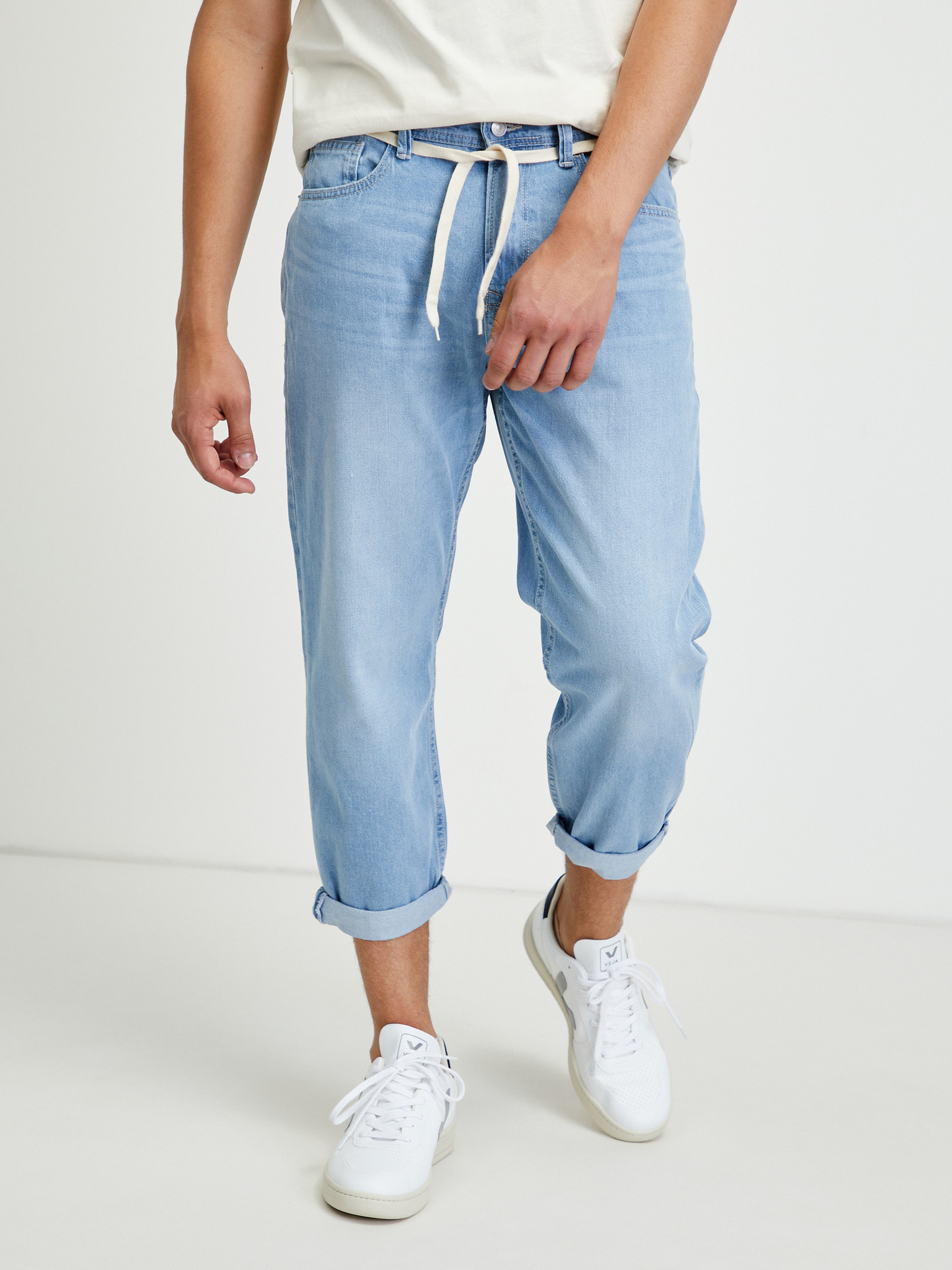 Barva: světle modrá Střih: straight fit Délka: regular Zapínání: knoflík, zip Něco navíc: vyšisovaný efekt Materiál: 100% bavlna Model měří: 188 cm Model má na sobě velikost: L