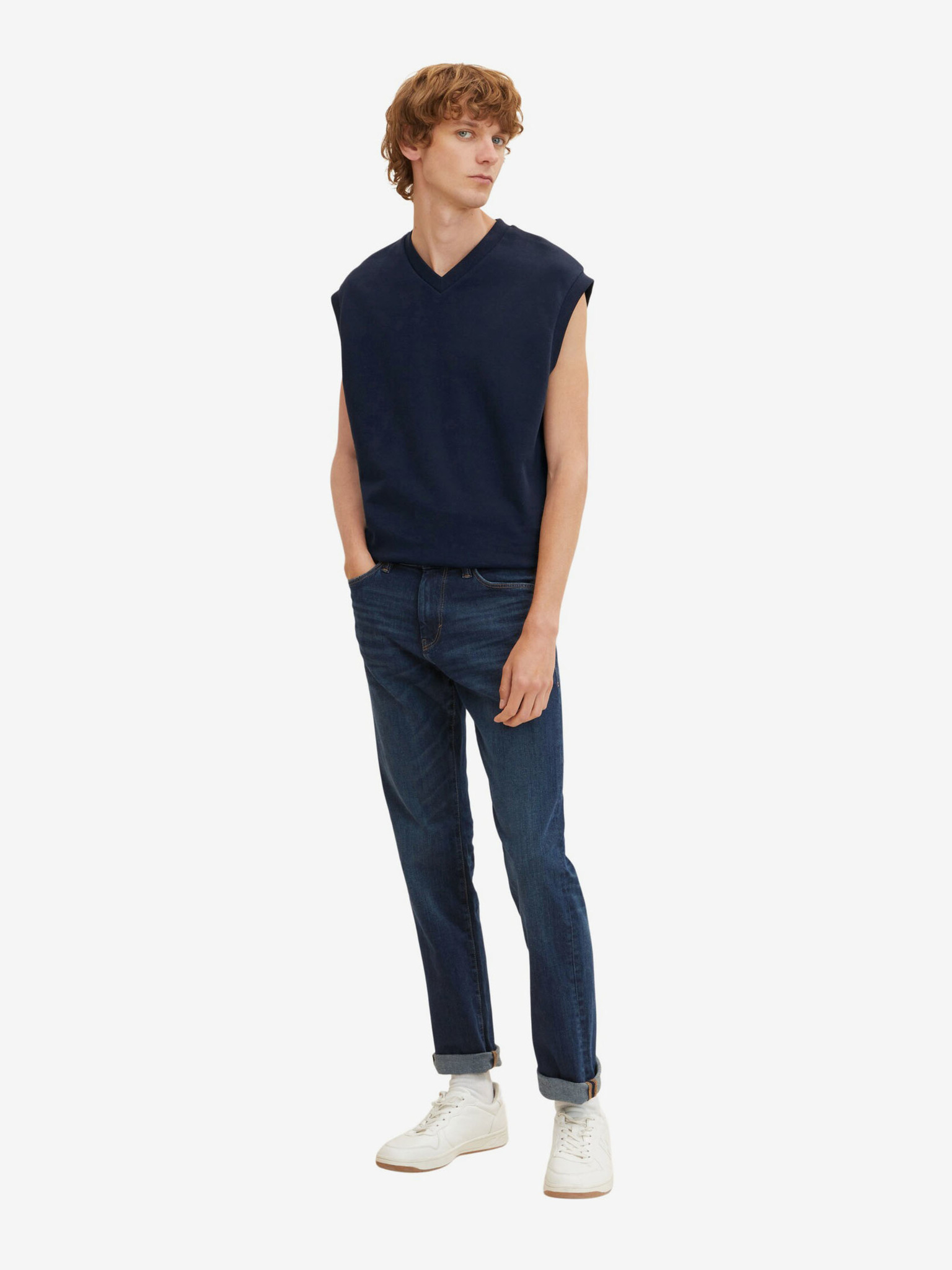 Barva: tmavě modrá Střih: slim fit Délka: regular Zapínání: na zip Materiál: 98% bavlna, 2% elastan