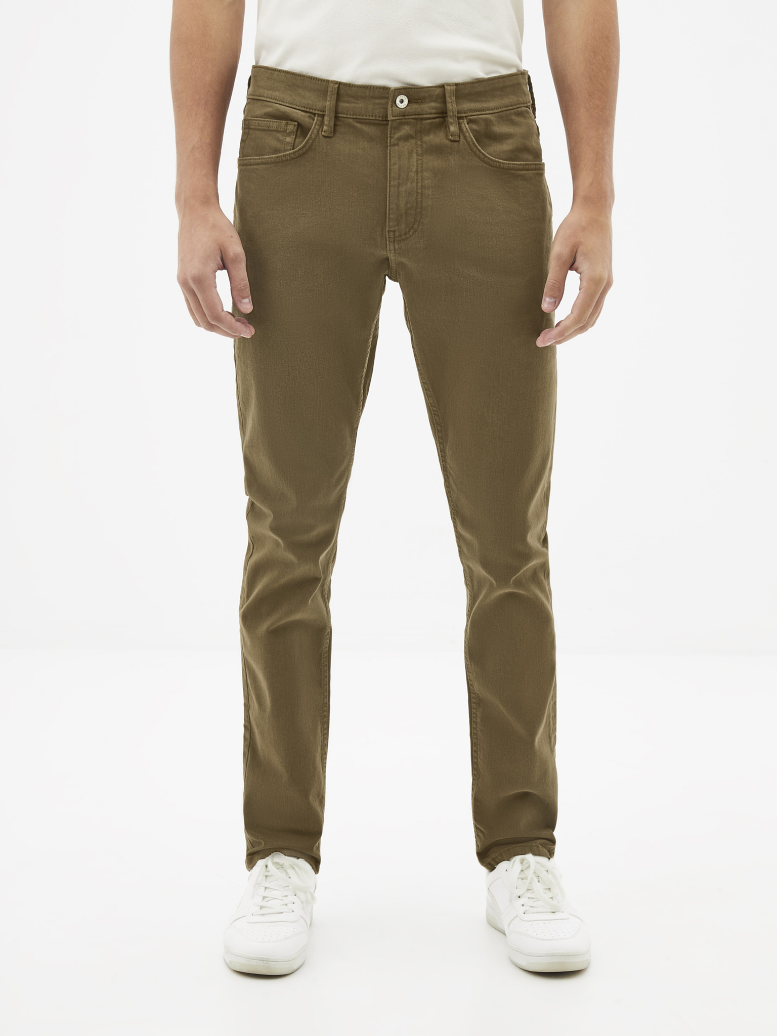 Model: Jopry Barva: khaki Střih: straight fit Délka: regular Zapínání: zip, knoflík Materiál: 98% bavlna, 2% elastan