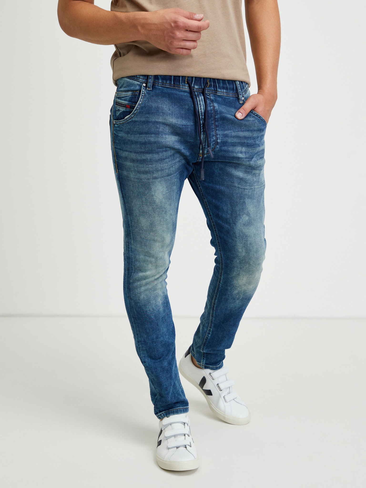 Model: Krooley Barva: modrá Střih: slim fit Délka: regular Zapínání: na gumu, zip Něco navíc: vyšisovaný efekt, možnost stažení v pase Materiál: 98% bavlna, 2% elastan Model měří: 188 cm Model má na sobě velikost: L