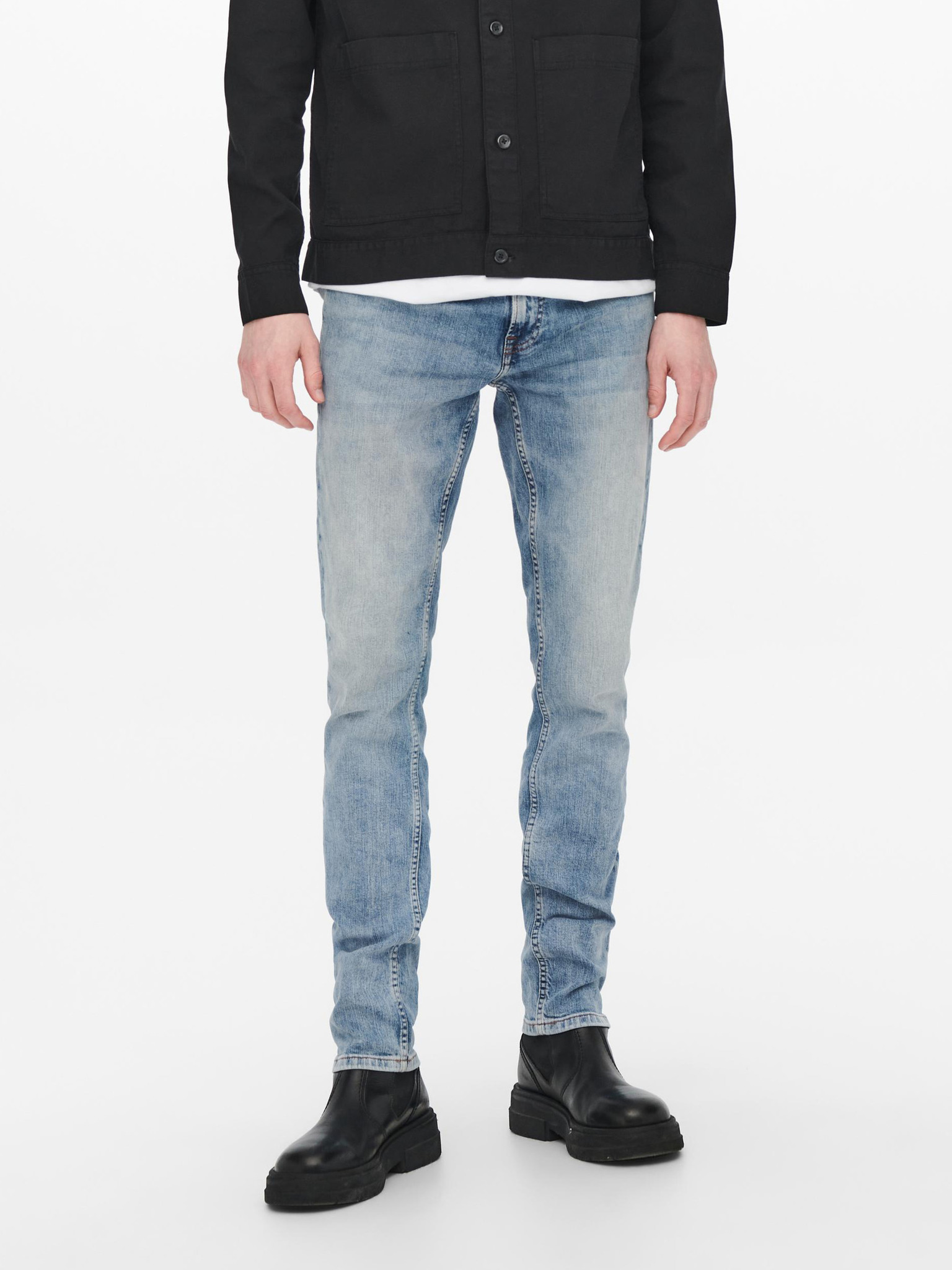 Model: Loom Barva: světle modrá Střih: slim fit Délka: regular Zapínání: zip, knoflík Něco navíc: vyšisovaný efekt Materiál: 98% bavlna, 2% elastan