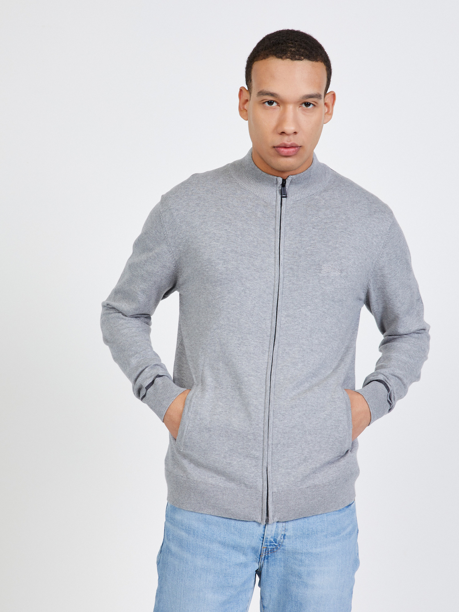 Barva: světle šedá Střih: regular fit Rukáv: dlouhý Zapínání: na zip Materiál: 89% bavlna, 10% nylon/polyamid, 1% elastan