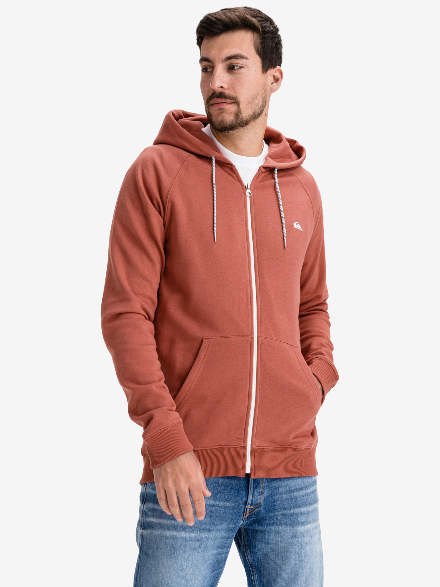 Materiál: 70% bavlna, 30% polyester Střih: regular fit Kapuce: s kapucí Vzor: hladký Rukáv: dlouhý Praní: 30°C Barva: cihlová