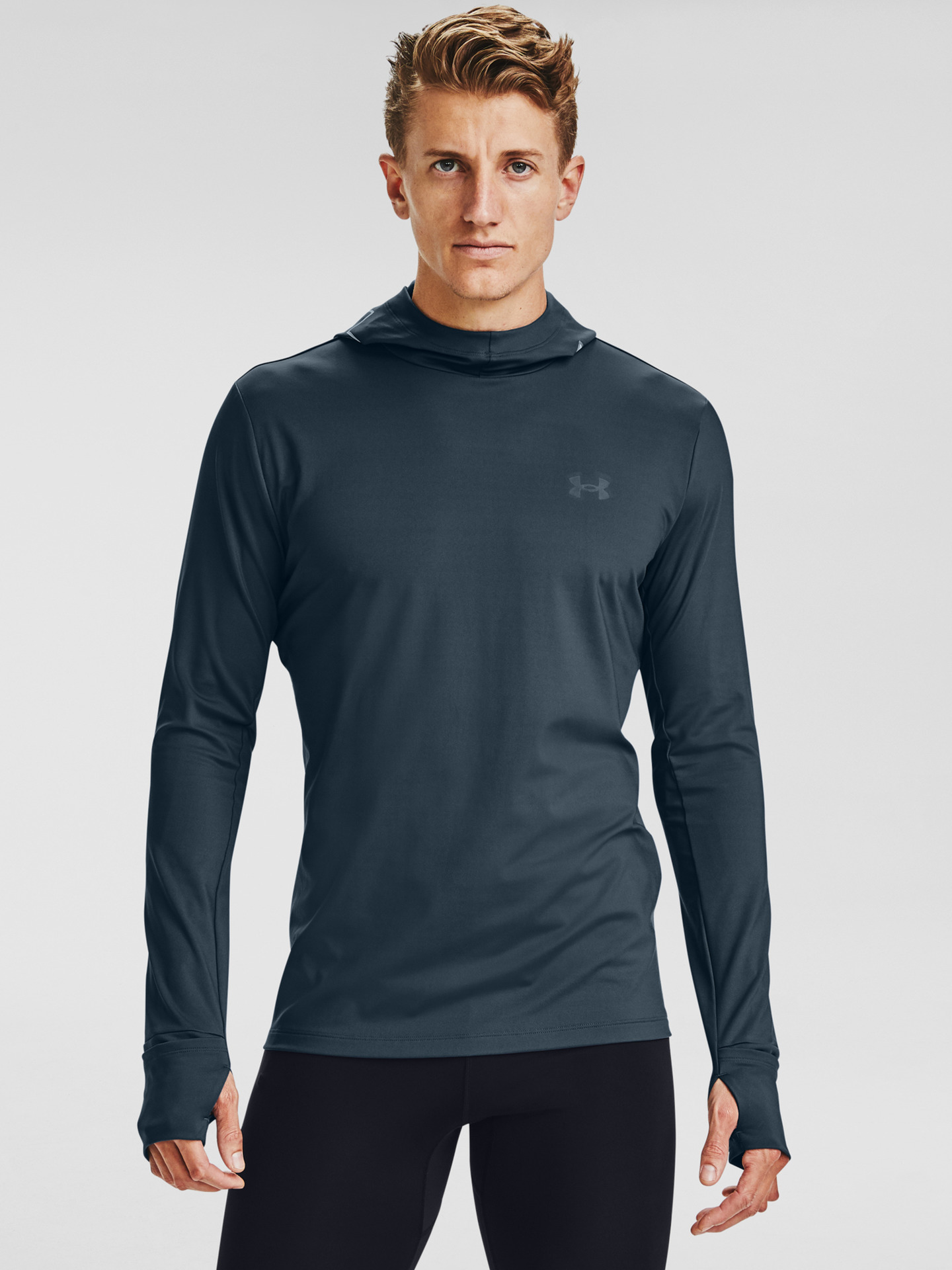 Materiál: 77% polyester, 23% elastan Střih: regular fit Kapuce: s kapucí Vzor: hladký Rukáv: dlouhý Praní: 30°C Barva: temně modrá Detail: technologie ColdGear® – udržuje tělesné teplo i v chladném počasí