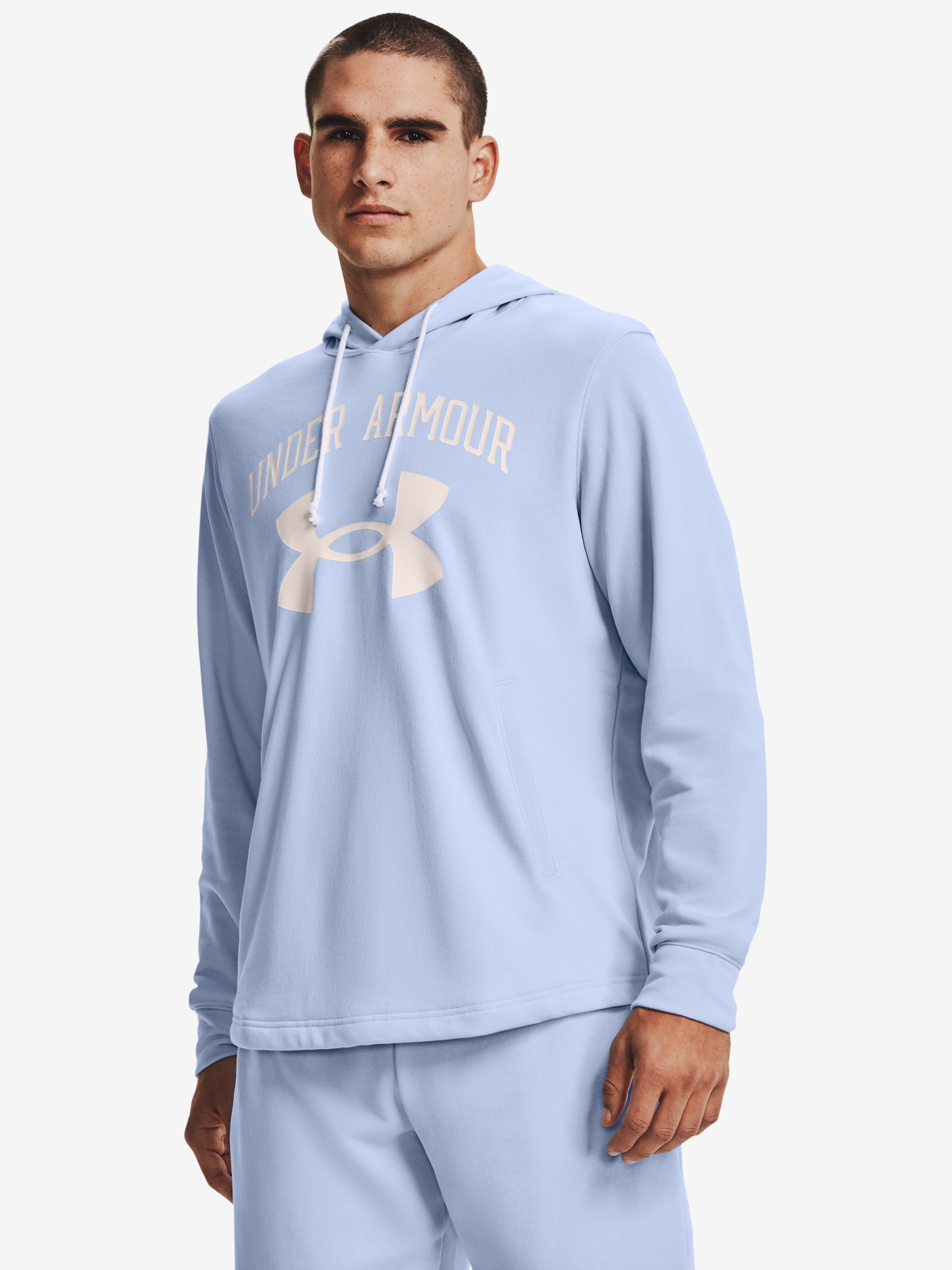 Materiál: 80% bavlna, 20% polyester Střih: loose fit Vzor: logo Rukáv: dlouhý Kapuce: s kapucí Praní: 30°C Barva: modrá Detail: technologie Armour Fleece® – lehký a hřejivý materiál