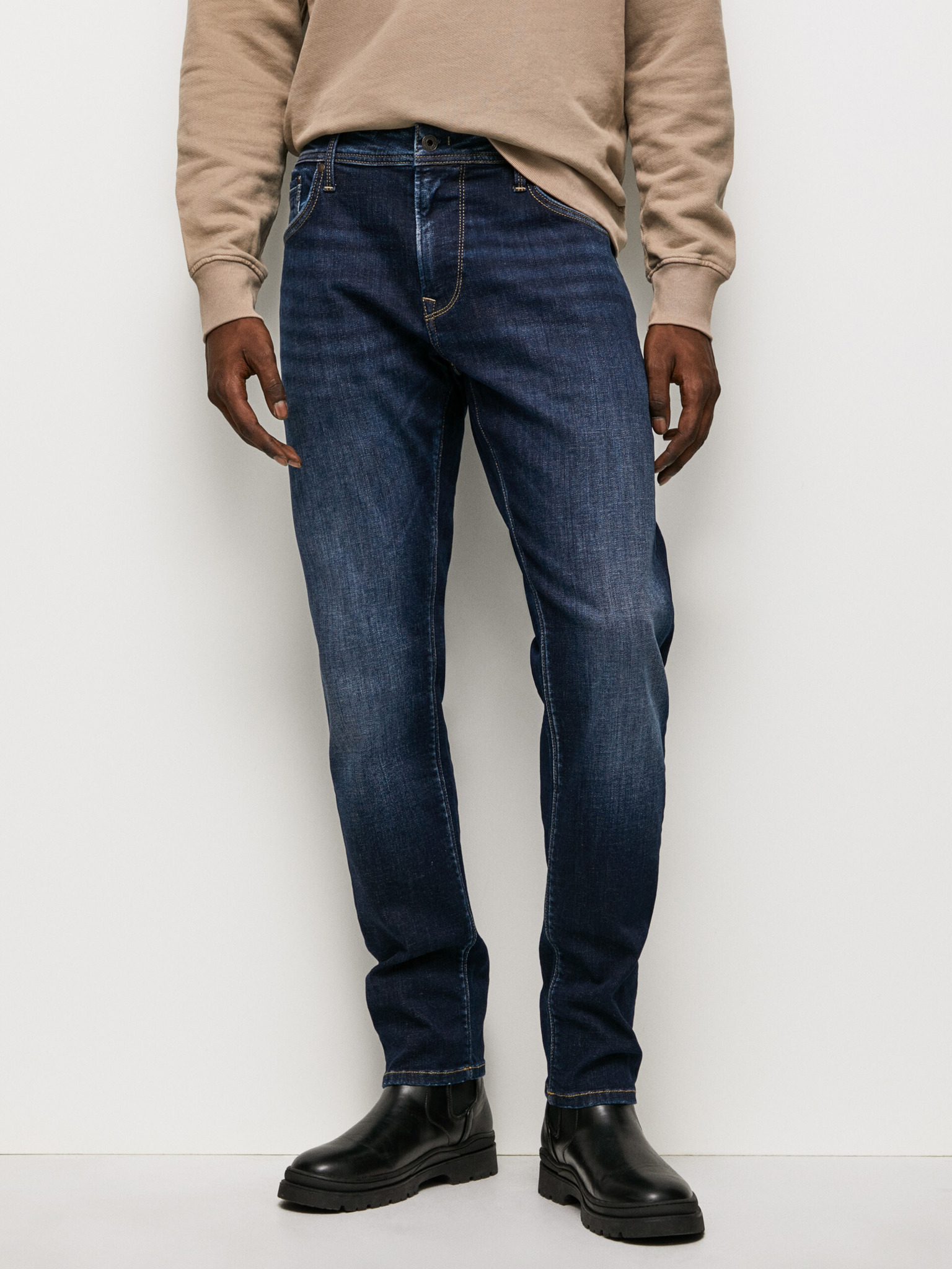 Model: Stanley Barva: tmavě modrá Střih: straight fit Délka: regular Zapínání: knoflík, zip Něco navíc: vyšisovaný efekt Materiál: 93.5% bavlna, 4% elastrell, 2.5% elastan