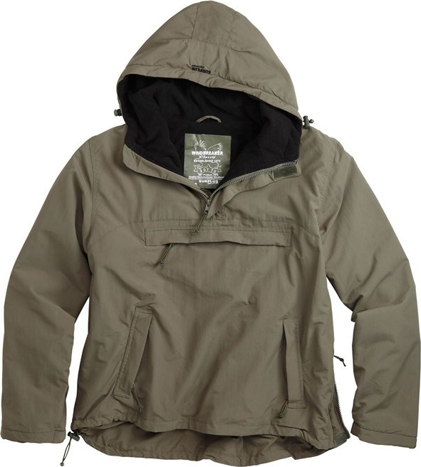 Atraktivní bunda do nepříznivého počasí Praktická zateplená bunda do nepříznivého počasí zhotovená z prodyšného avšak zároveň vodoodpudivého a větruodolného materiálu. Zateplení nevyjímatelnou fleecovou podšívkou (v rukávech pouze polyester). Oblékání přes hlavu, zapínání na zip krytý légou. Po zapnutí chrání zvýšená horní část partii krku. Bunda má tři kapsy – jednu větší s vodorovným vstupem na hrudi a dvě na bocích se šikmými vstupy. Všechny kapsy se zavírají zipem a jsou kryty légami. Bunda je vybavena kapucou s praktickým stahováním na obou stranách pomocí pružné tkanice zajištěné brzdičkami. Kapuca je opatřena fleecovou podšívkou, což zvyšuje komfort ochrany hlavy. Šířku v pase lze upravit pružnou tkanicí se zajištěním. Stahování se ovládá na pravé straně, zatímco na levé se nachází skrytý rozparek zapínaný zipem pro snadnější přístup ke kapse kalhot bez nutnosti vykasat spodní okraj bundy (lze využít např. i v případě usnadnění přístupu ke zbrani zavešené na opasku). Manžety rukávů jsou vybaveny patkou se suchým zipem pro možnost stažení. Materiál: vnější: 100 % nylon podšívka: fleece (v rukávech: 100 % polyester) Výrobce: Surplus, Německo Kód výrobce: 7001