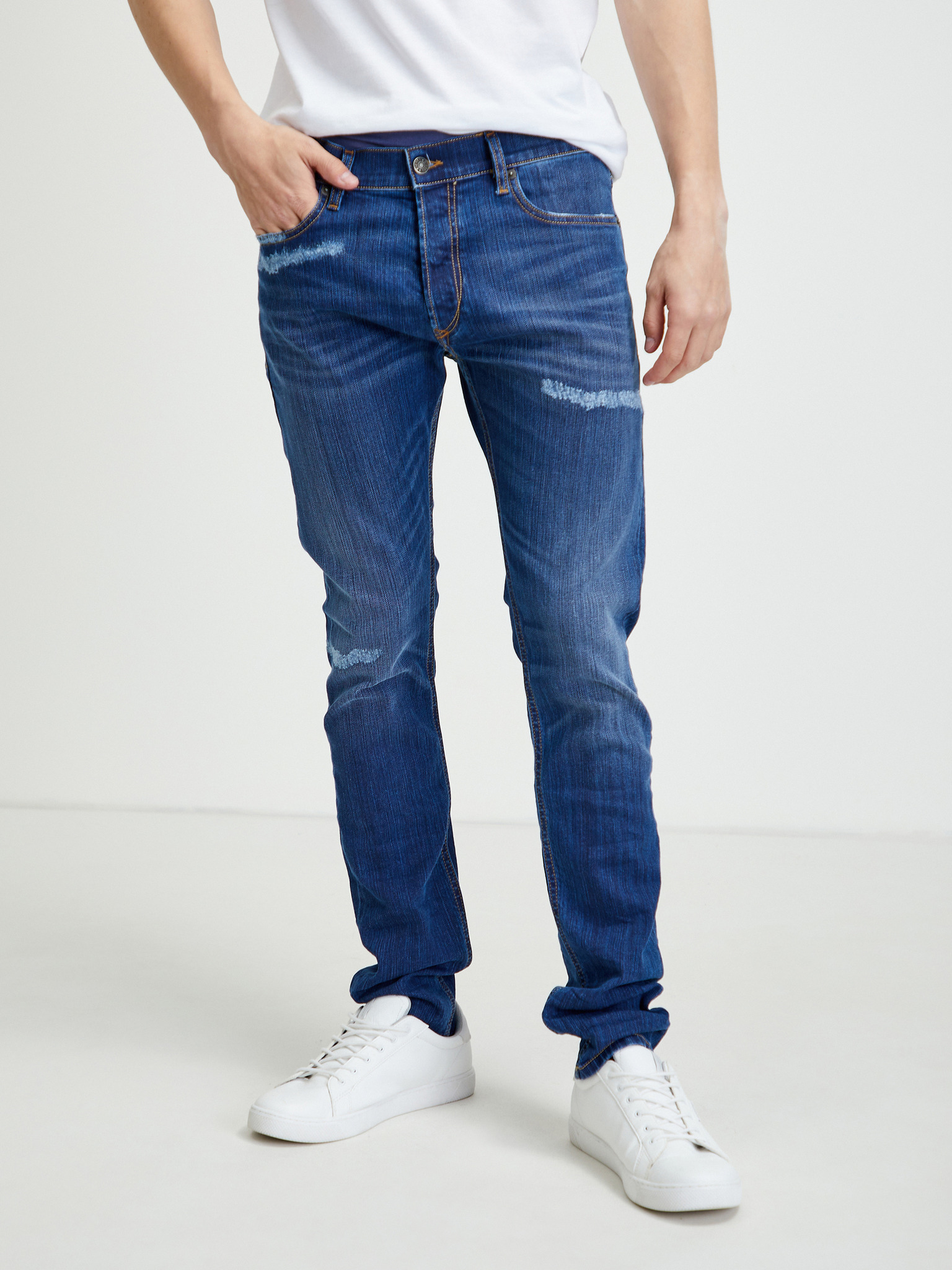Model: Tepphar Barva: modrá Střih: skinny fit Zapínání: zip, knoflík Délka: regular Něco navíc: potrhaný efekt Materiál: 98% bavlna, 2% elastan Model má na sobě velikost: L Model měří: 185 cm