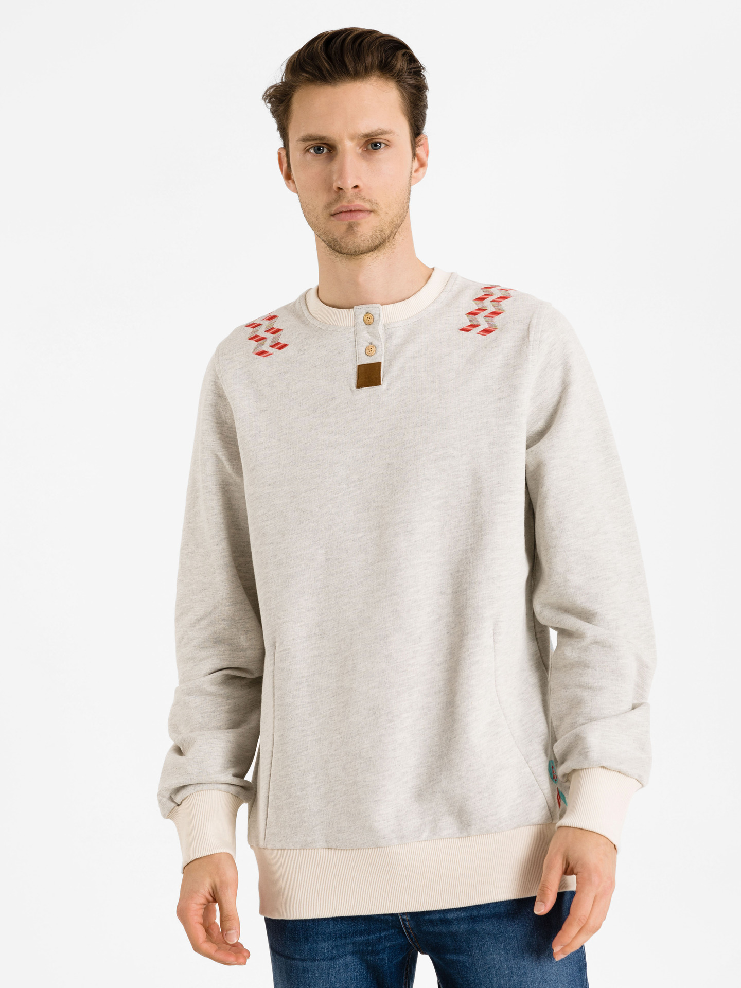 Materiál: 65 % bavlna, 35 % recyklovaný polyester Střih: regular fit Kapuce: bez kapuce Vzor: žíhaný Rukáv: dlouhý Praní: 30°C Barva: světle šedá