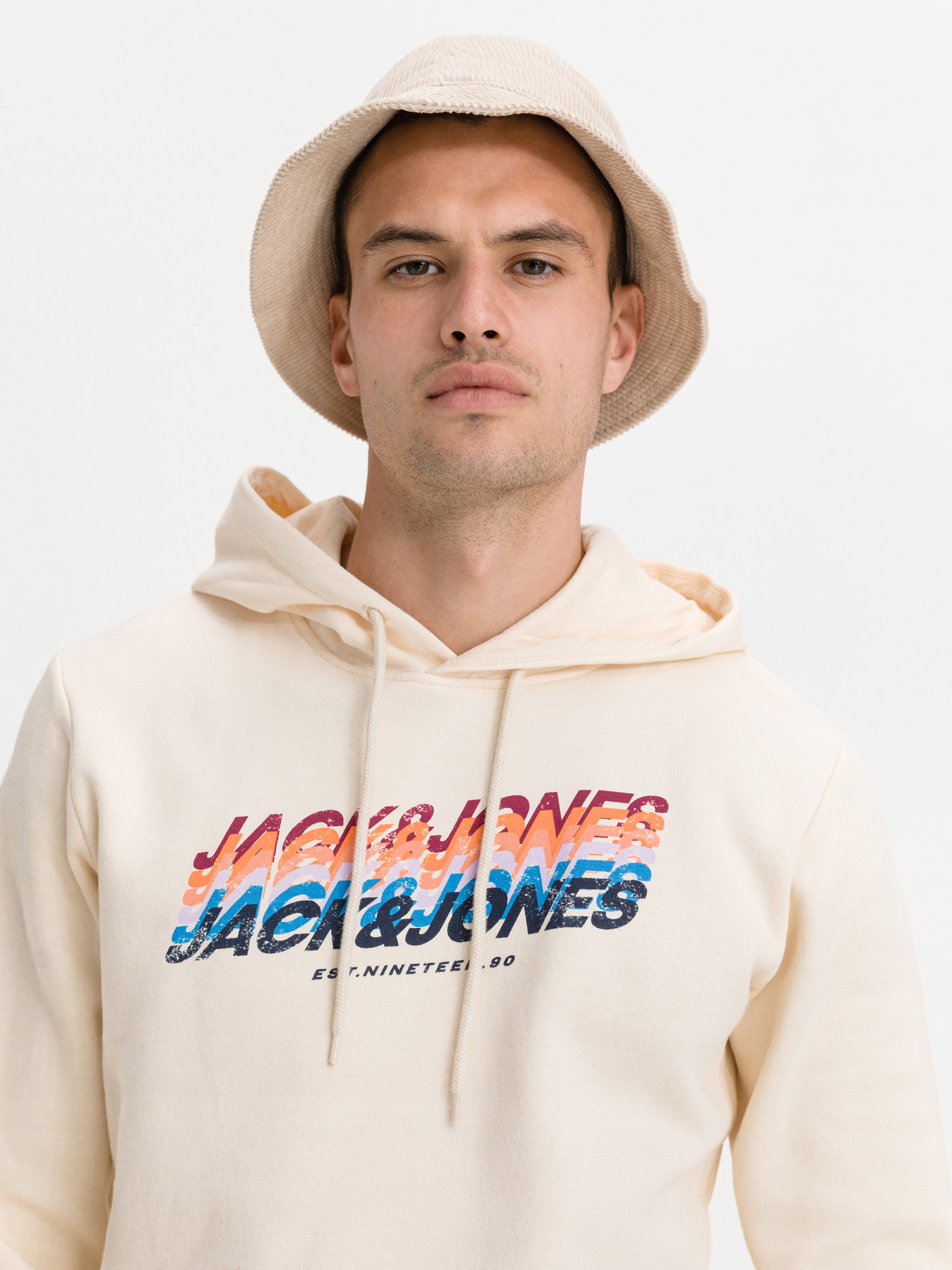 Materiál: 70% bavlna, 30% polyester Střih: regular fit Vzor: hladký s potiskem Rukáv: dlouhý Kapuce: s kapucí Praní: 30°C Barva: krémová Detail: sub-brand Originals by Jack & Jones, popraskaný potisk