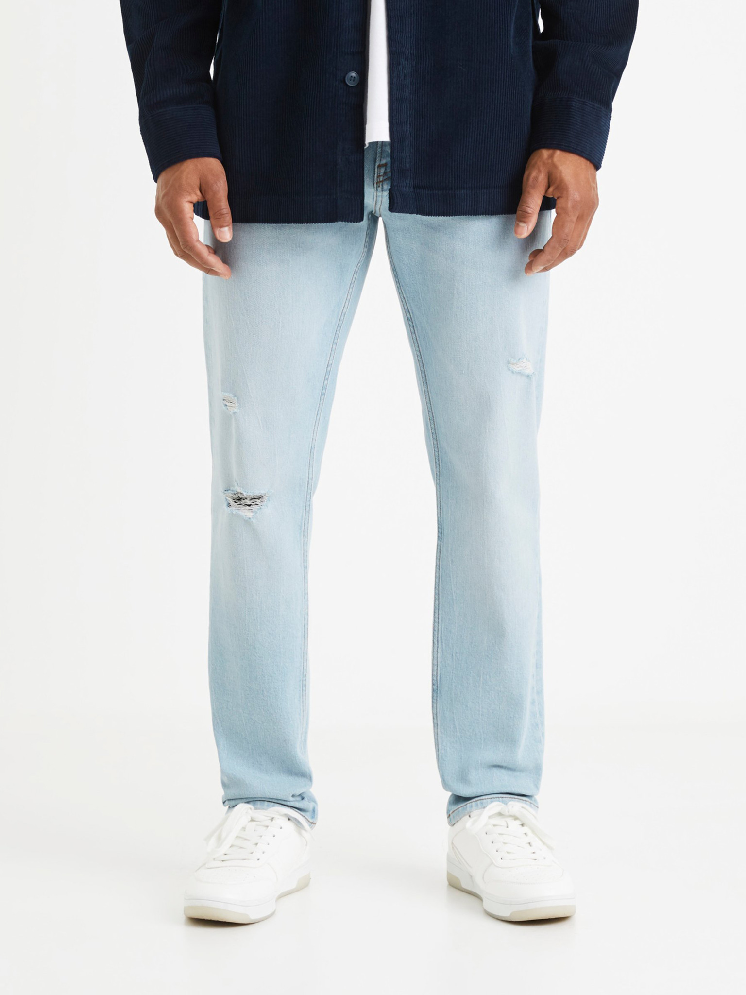 Model: Vomarble Barva: světle modrá Střih: straight fit Délka: regular Zapínání: zip, knoflík Něco navíc: potrhaný efekt, vyšisovaný efekt Materiál: 99% bavlna, 1% elastan