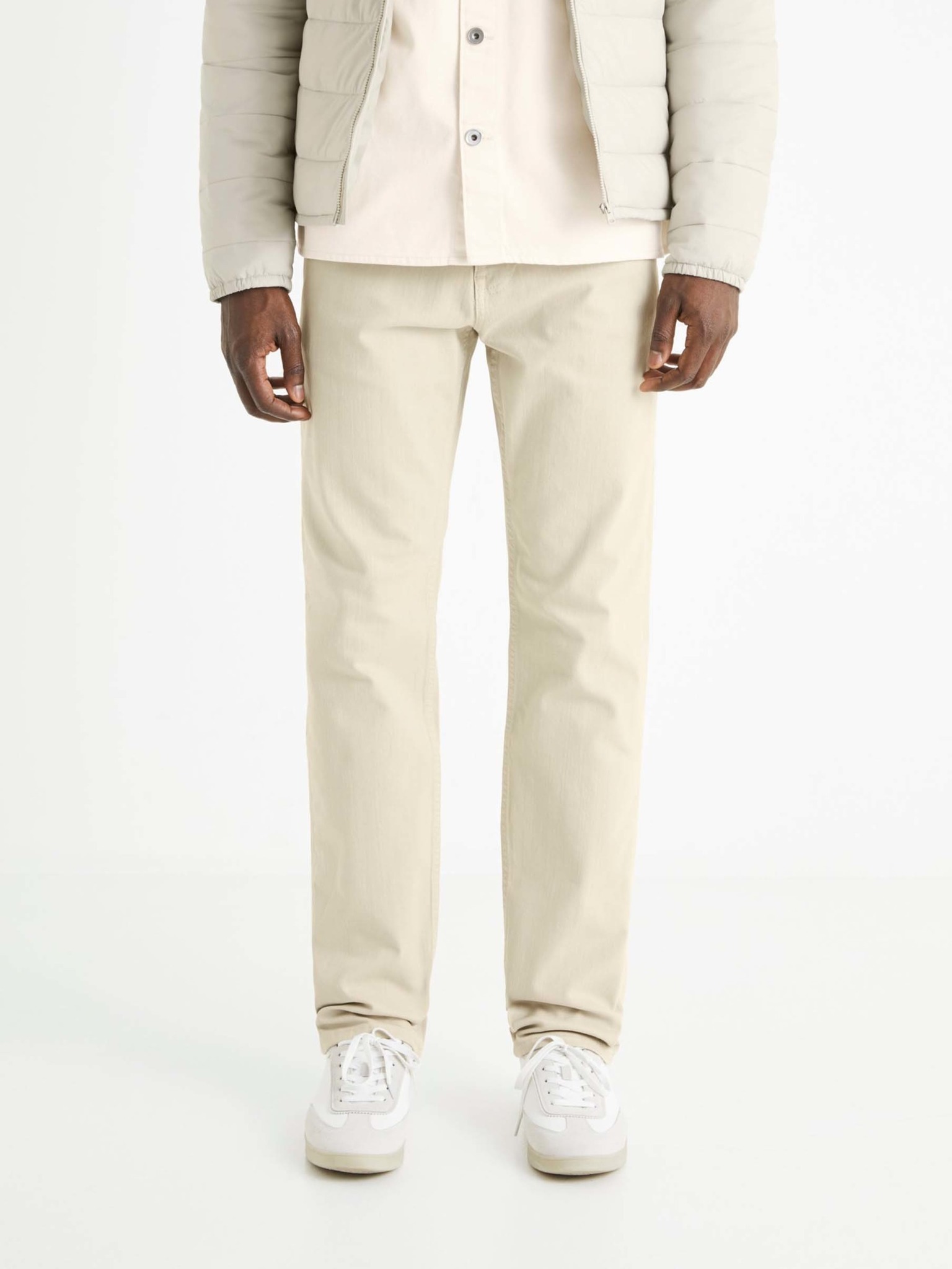 Model: Vopry1 Barva: béžová Střih: straight fit Délka: regular Zapínání: knoflík, zip Materiál: 98% bavlna, 2% elastan