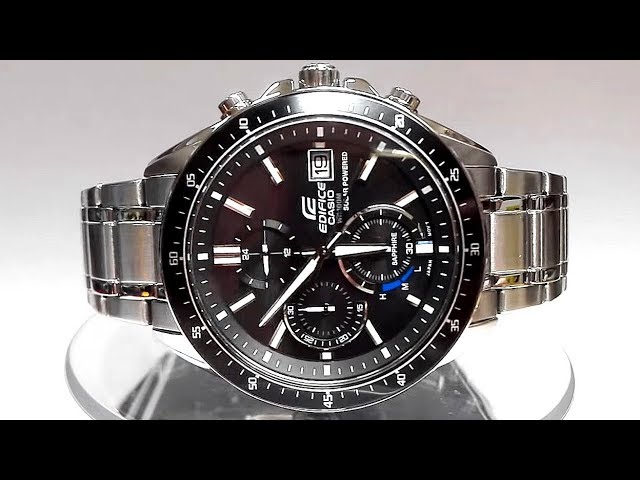 Casio Edifice EFS S510D-1A disponují ukazatelem data na pozici třetí hodiny, 24hodinovým zobrazením času a funkcí chronografu, jehož chod zobrazují dva přehledné subciferníky – čítač minut a vteřin. Stopky lze ovládat postranními tlačítky – horní stopky spouští a zastavuje, spodní resetuje naměřené hodnoty. S hodinkami lze měřit až třicetiminutové intervaly. Pouzdro i náramek hodinek jsou vyrobeny z nerezové oceli. Přehledný černý číselník je chráněn safírovým sklíčkem. Ručičky a indexy hodinek jsou opatřeny luminiscenční vrstvou, zajišťující lepší čitelnost při zhoršených světelných podmínkách. Vodotěsnost tohoto modelu je 100 m – s hodinkami tedy můžete bez obav plavat. Předností hodinek je solární napájení, při němž je akumulátor hodinek dobíjen pomocí světla. Akumulátor má delší životnost než běžná baterie, čímž odpadá potřeba pravidelné 2 – 3leté výměny. Díky průměru pouzdra 46 mm se řadí mezi velké hodinky.